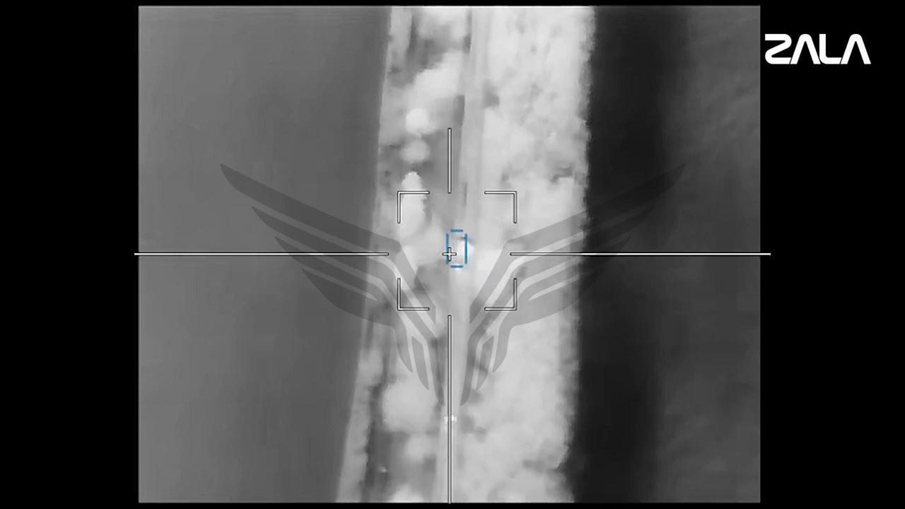The first accurate strike of a barrage munition, which struck a moving target, severely damaged the MLRS. The enemy vehicle was completely destroyed by the second Lancet. The ZALA Z-16 reconnaissance ZALA provided objective control of the destruction of the RM-70 Vampire MLRS.